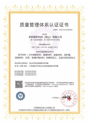 质量管理体系认证证书